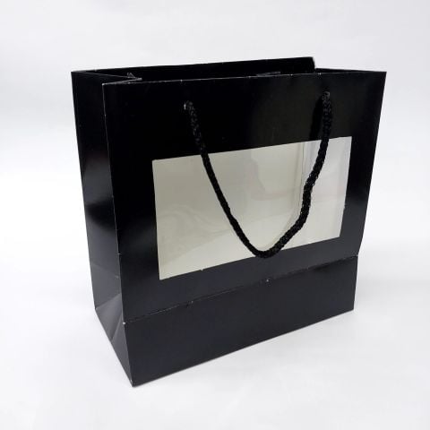 10 Lu (20x20 Cm) Pencereli Körüklü, İpli, Karton Çanta, Poşet