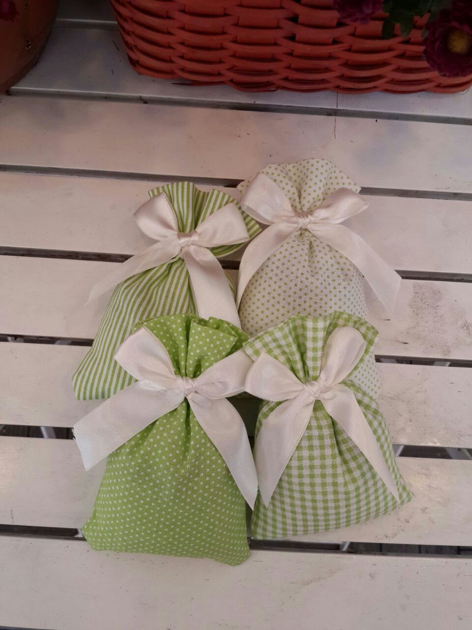 10 Lu Elyaf ve Lavanta Dolu Koton Hazır Süslü Kese,Yeşil