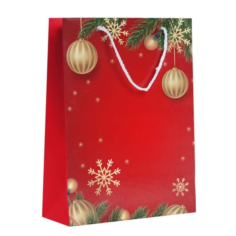 10 Lu Kırmızı Yılbaşı Coşkusu Karton Çanta 26x40 Cm