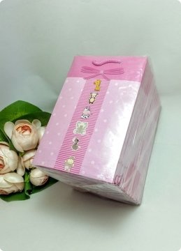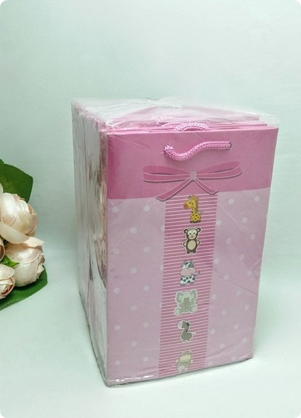 11x17 Cm Fiyonklu Pembe İpli Karton Çanta, Poşet