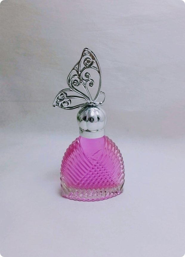 12 li 3 boyutlu pvc kelebek Tepelikli Diva Yassı Cam Kolonya Şişesi 50 cc