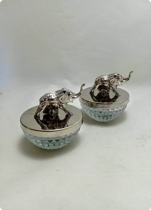 20 Adet Fil Metal Kubbe ve Tepelikli Kristalize Cam Kase-Lokumluk