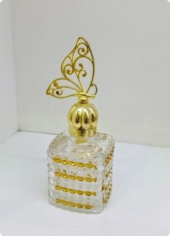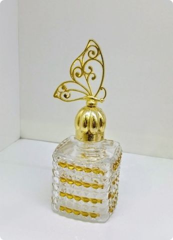 20 li Kare Kristalize Yaldızlı Cam Kolonya Şişesi (Metal Kelebek Tepelikli)
