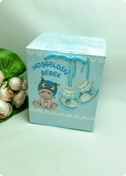 25 Li Hediyelik Bebek Patikli Karton Çanta - Poşet 14x17 Cm