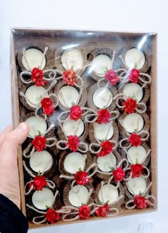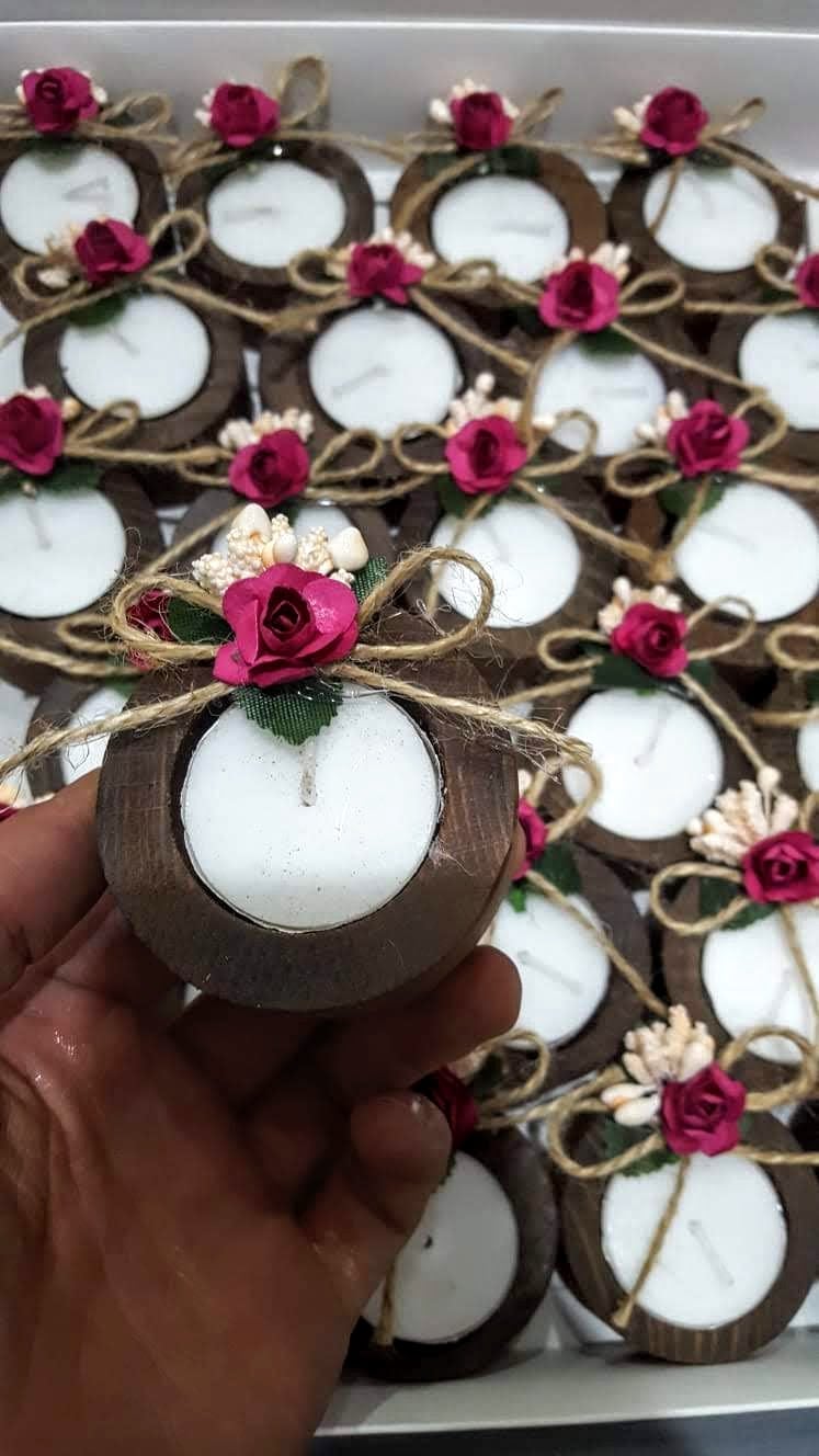 50 li Süslü Ahşap YUVARLAK Mumlu Nişan şekeri