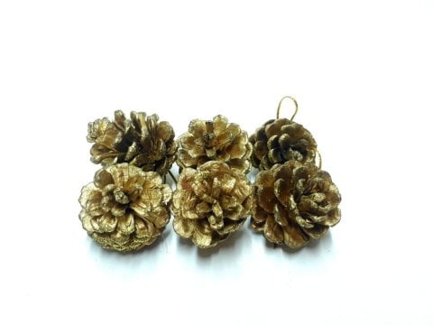 6'lı Altın 4 Cm Kozalak Ağaç Süsü