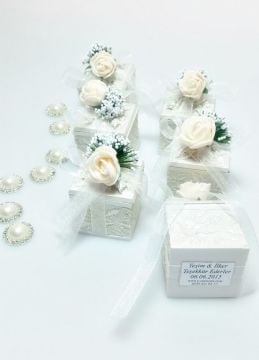 Süslü Polyester Kare Güllü Kutu Nikah Şekeri