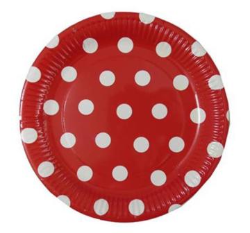 Puantiyeli Kırmızı Karton Tabak 8 Li