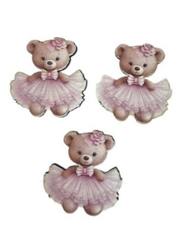 Ahşap Üzeri Uv Baskı Pembe Elbiseli Ayıcık Figür