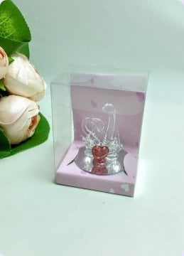 Cam Kuğular Kırmızı Kalpli (Asetat Kutulu)