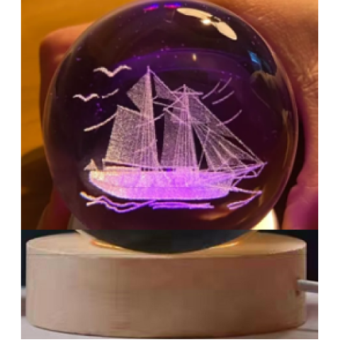 Dekoratif GEMİ Tasarımlı Ahşap altlıklı Işıklı Cam Küre