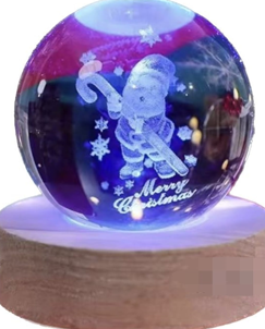Dekoratif Noel Tasarımlı Ahşap altlıklı Işıklı Cam Küre Büyük Boy 8cm