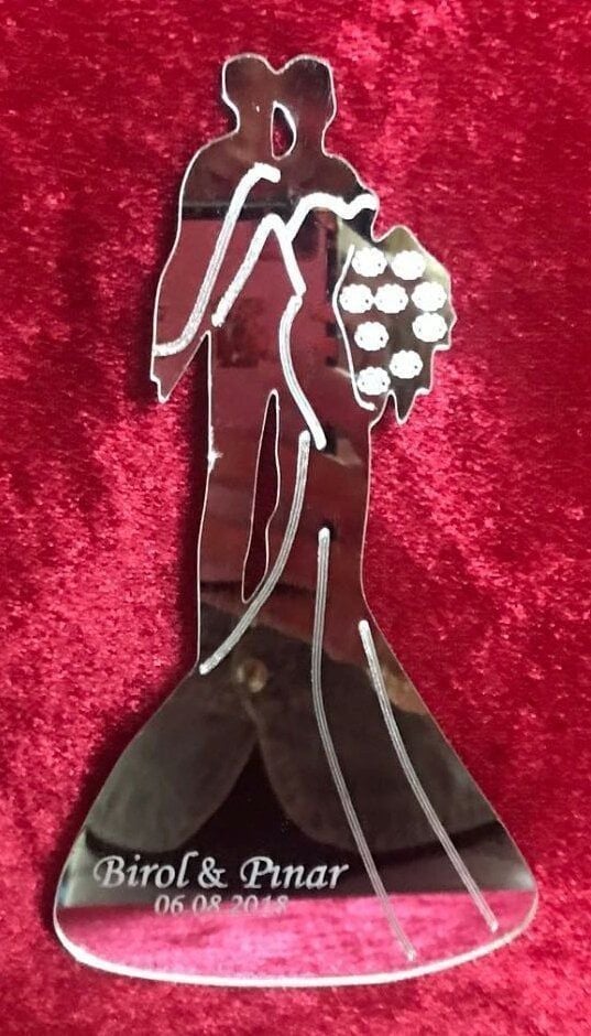 Eli Çiçekli Gelin Damat Pleksi ayna Nikah şekeri (8*4,5 cm)