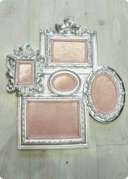 Gümüş Boyalı Çerçeve, (PEmbe,Mavi,Krem Kadife) Kumaş Kaplamalı Polyester Beşli ( 5 li ) Resim Çerçeve Kapı Süsü Kapı Süsü Fon