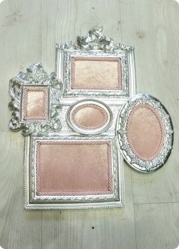 Gümüş Çerçeve (Mavi&Pembe&Krem) Kadife Kumaş Kaplamalı Polyester Beşli ( 5 li ) Resim Çerçeve Kapı Süsü Fon