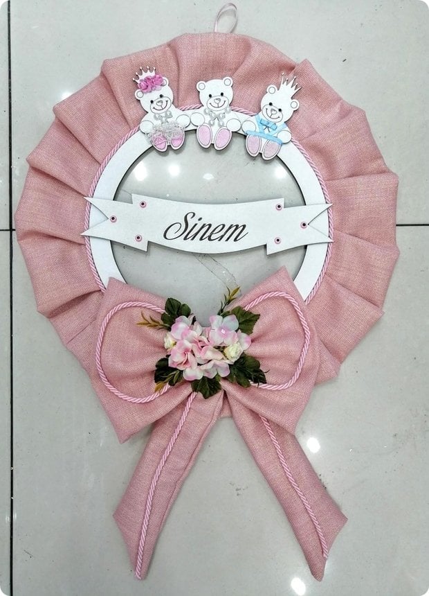 İsme Özel Fırfırlı Ayıcıklı Kapı Süsü