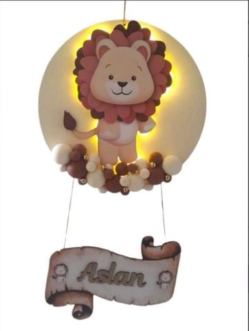 İsme Özel Işıklı Arslan Dekorlu Toplu Kapı Süsü
