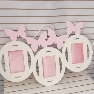 Kapı Süsü ;Kelebekli, Ahşap Boyalı,Kumaş Fonlu Bebek Oda Kapısı İçin