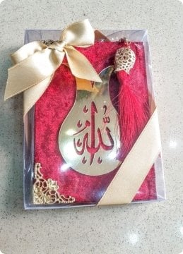 Süslü 12x16 cm Kadife Kumaş Kaplı Yasin / Tesbihli / Kutulu 10 lu