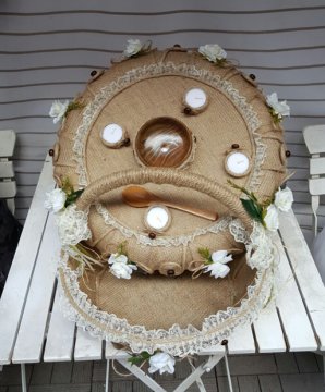 Süslü,Jüt Kumaş Sepet,Kına Tepsi Seti 2'li