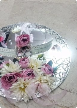 Süslü Yuvarlak Nişan, Söz Aynalı Yüzük Tepsisi / Supla